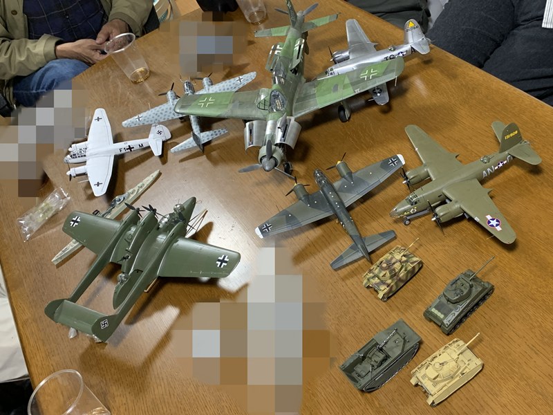 ファインモールドのキットです。 奥は自分(清水会員)です。 続々と会員の作品が完成しています。
