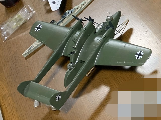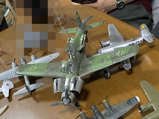 BF110は村田会員の作品です。 エデュアルドのキットです。 このキットの難点は機首のレーダーアンテナがイモ付けだということだそうです。 強度的に不安ですね。 それ以外は新森会員の作品です。 新森会員もブルーエンジェルスが完成しましたね。