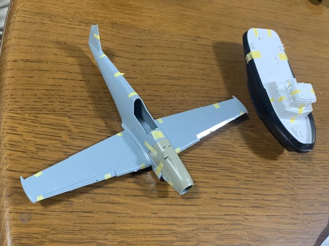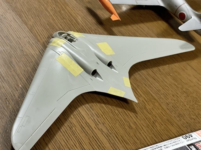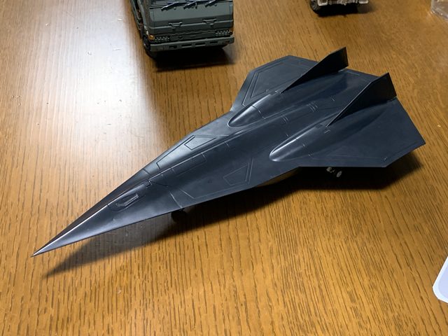新森会員が製作しているTOPGUNマーベリックに登場する架空の航空機、ダークスターのキットです。 こんなぺらっとしたキットで6500円もするなんて、こんなの買ったの!?と散々な言われようですが、レシプロ機でも5000円は珍しくない昨今でライセンス含めこの大きさでキャラクターキットと考えれば妥当ではないでしょうか。 新森さん大丈夫だ。自分(清水会員)も買ったぞ。