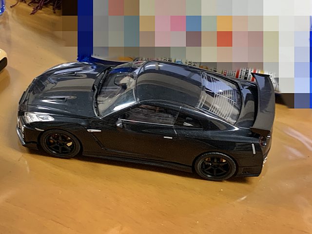 同じく新森会員が製作している楽プラのGT-Rです。 バリエーションキットですが、金型修正をしてより組み立て易くなっているようです。