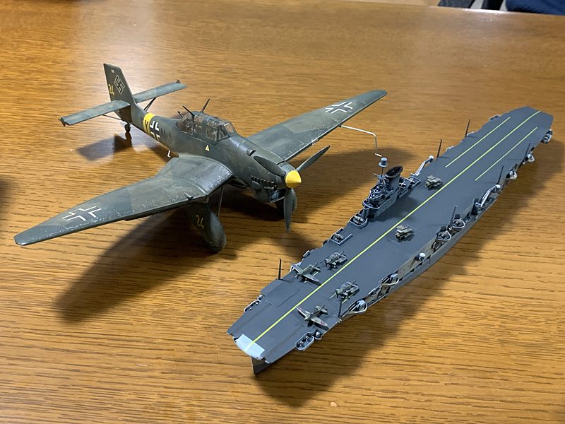 スツーカは完成しました。 自分(清水会員)の作品です。 アークロイヤルは村田会員の作品です。 雑誌に掲載された作品ですね。