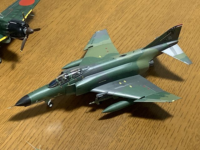 一幸会員の作品です。 F-4E(Late) クラークエアベース です。 ファインモールド 1/72 です。 爆弾がきれいに取り付けられています。 接着面が小さくうまく付かないんですよね。